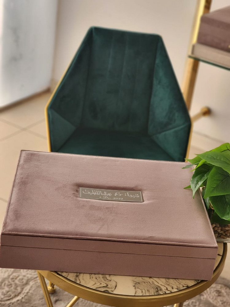 طباعة بكج مخمل موف البوم 30*45 تاج مستطيل مكون من عشرة صفحات خامة مع صندوق يحتوي على مكان لليو اس بي و المني البوم بجودة عالية الوضوح مع مطوية و مجلة كلاسيك و ومني البوم من نفس الخامة ولوحة جدارية A3 ورق طباعة مقاوم للماء احبار اصلية ضمان جودة طباعة عالية