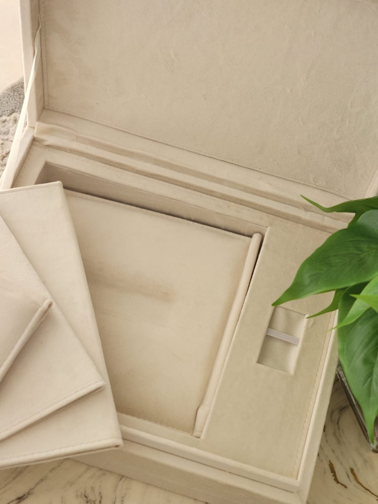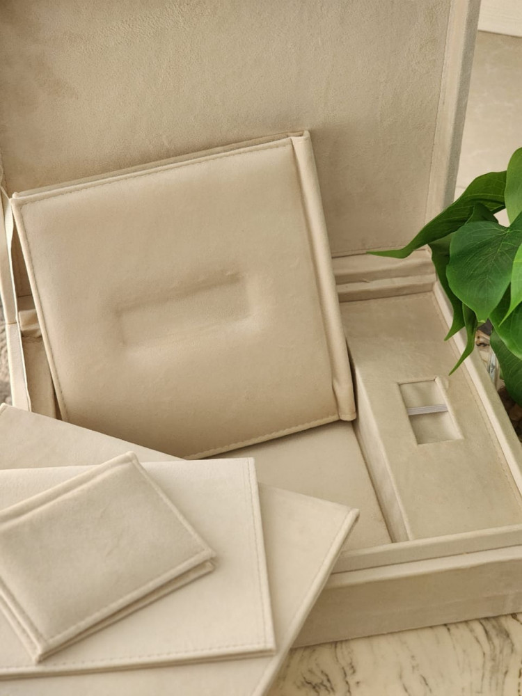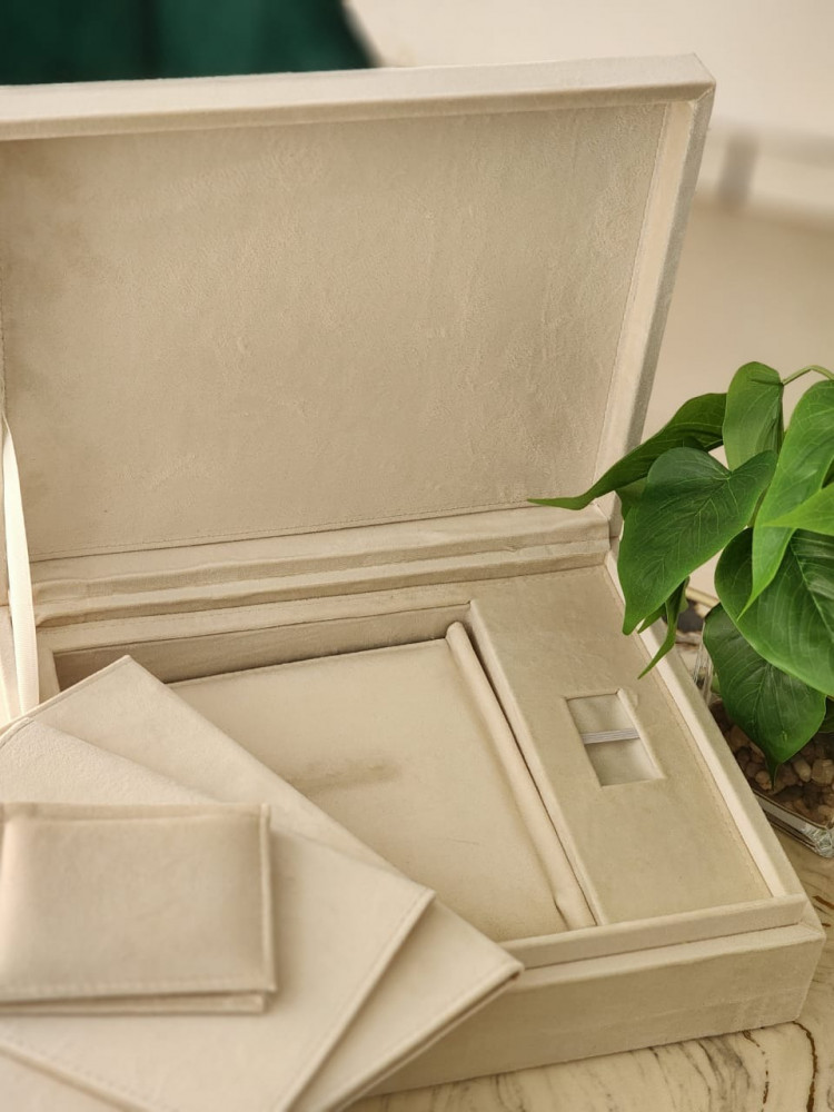 طباعة بكج البوم 20*40تاج مستطيل مكون من عشرة صفحات خامة مع صندوق يحتوي على مكان لليو اس بي بجودة عالية الوضوح مع مطوية و مجلة كلاسيك و ومني البوم من نفس الخامة ولوحة جدارية A3 ورق طباعة مقاوم للماء احبار اصلية ضمان جودة طباعة عالية