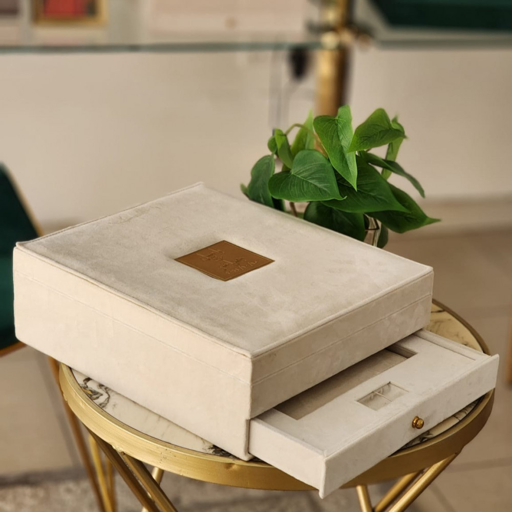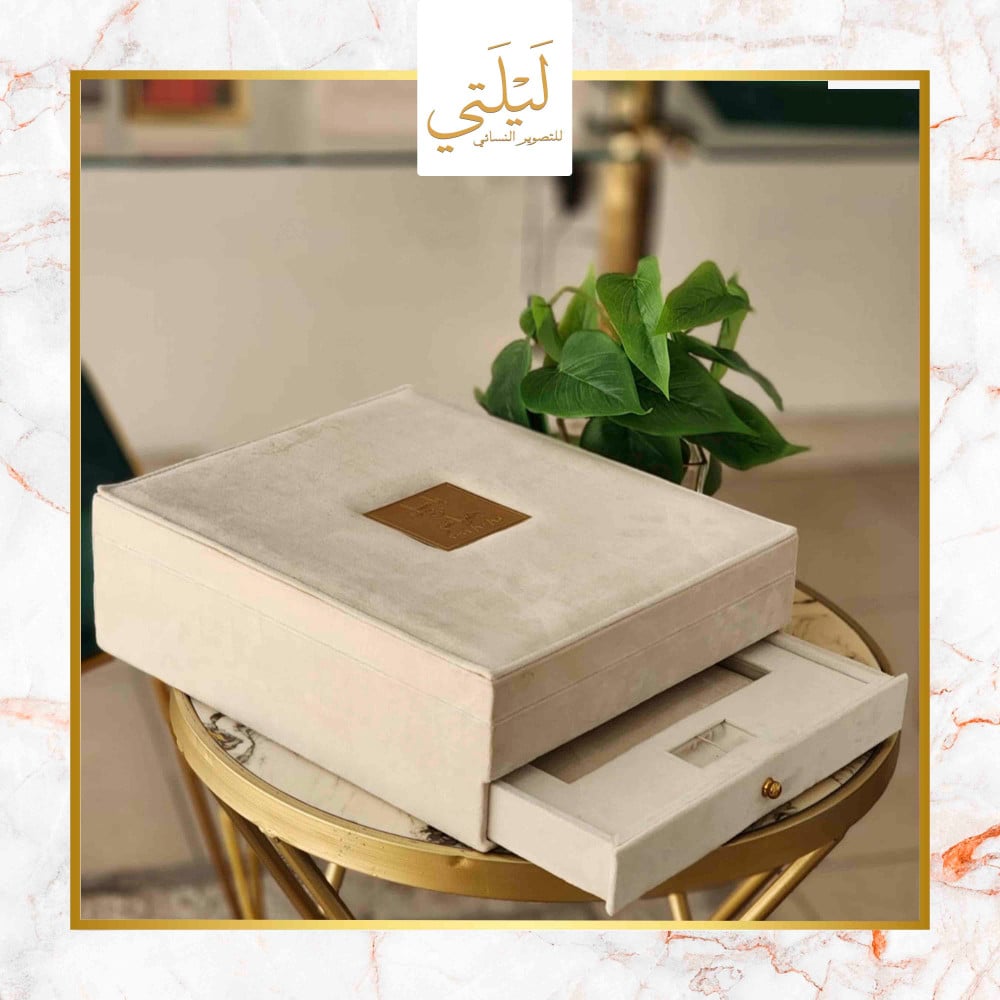 طباعة بكج مخمل بني البوم 30*45 تاج مربع مكون من عشرة صفحات خامة مع صندوق يحتوي على درج مكان لليو اس بي بجودة عالية الوضوح مع مطوية و مجلة كلاسيك و ومني البوم من نفس الخامة ولوحة جدارية A3 ورق طباعة مقاوم للماء احبار اصلية ضمان جودة طباعة عالية